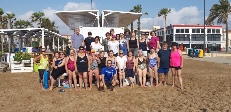 El Programa d’Activitat Física i Salut s’ha clausurat este matí en la instal·lació de Voleibol de platja Malva-rosa, després de deu mesos d’activitats (setembre-juny), en les quals han participat més de 150 ciutadans i ciutadanes. A més, s’ha impartit la primera classe de la temporada estival a la platja.