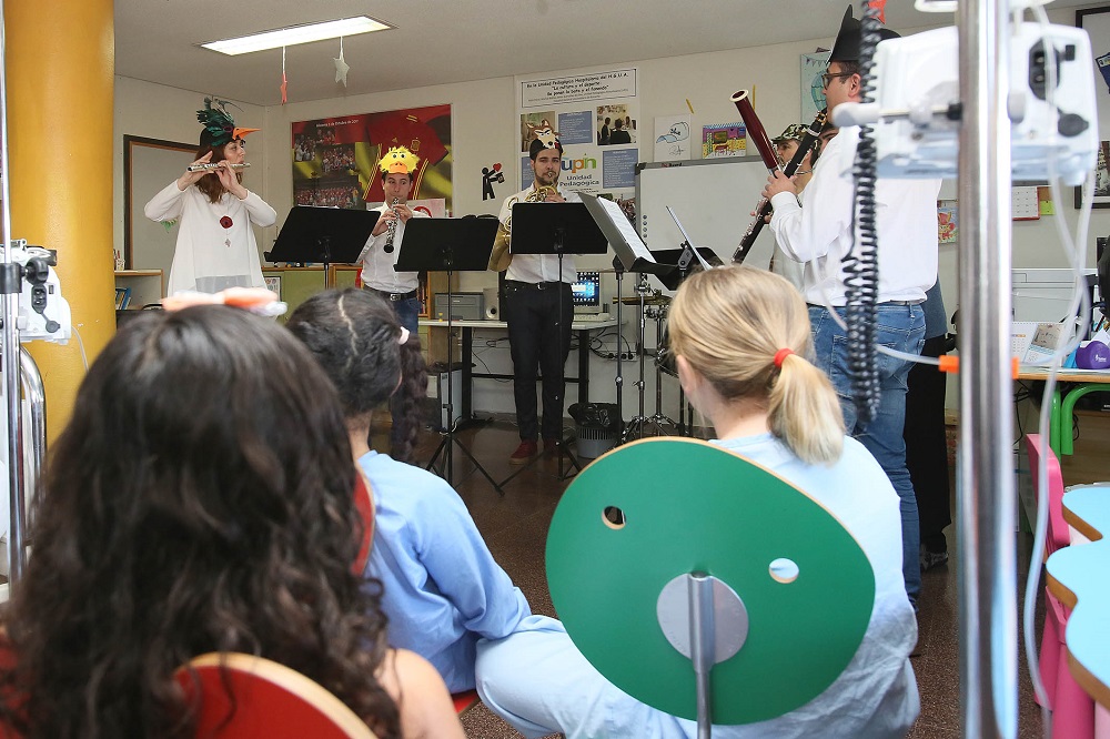 La visita més emotiva s’ha produït en la Unitat de Pediatria de l’hospital. Allí els músics de ADDA Simfònica han delectat als més xicotets amb un conte musicat de ‘Pedro y el Lobo’ de Sergei Prokoviev, minuts després que el cap del Servei de Pediatria, el doctor Javier Gonzáles de Déu, haja explicat que aquesta àrea és el servei mèdic més gran de la província en el qual treballen 400 persones, de les quals 115 són pediatres i la resta infermers i auxiliars. “La música és terapèutica”, ha indicat, al mateix temps que ha assenyalat que per als xiquets ingressats i per als seus familiars aquestes iniciatives humanitzen a tots.