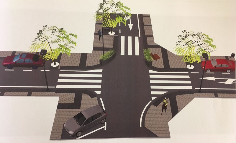 El projecte també contempla l’ampliació de l’ample de les zones destinades exclusivament al vianant, mantenint una banda d’aparcament en cordó i projectant sobreamples a les cantonades per a la protecció de la banda d’aparcament i per a la ubicació d’arbratge, jardineres i mobiliari urbà. De manera que s’ha optat per mantindre un ample de la zona de circulació de vehicles de tres metres i una banda d’aparcament en cordó de dos.
