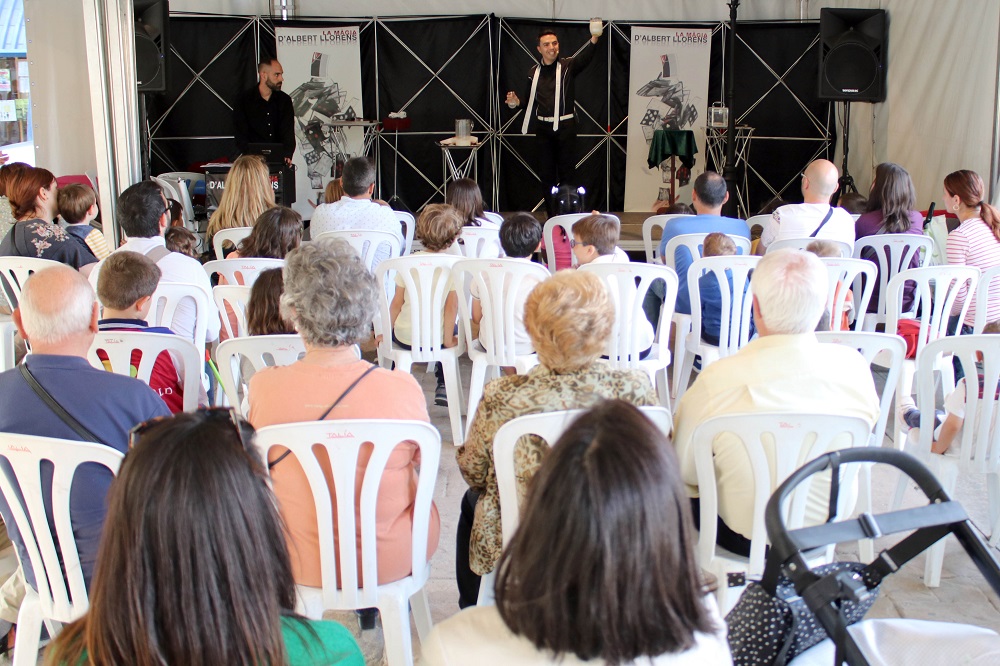 Després de la inauguració, s’ha fet lliurament d’un obsequi a la guanyadora del cartell que anuncia aquest any la Fira, Alba Viciano. La resta de cartells que optaven a ser imatge de l’esdeveniment enguany poden visitar-se a la caseta de la biblioteca. A les 19.30 hores, ha tingut lloc el principal espectacle del dia d’avui, de màgia, a càrrec d’Albert Llorens anomenat ‘Gran Bibliomàgia’, al qual un gran número d’onders han acudit en família.